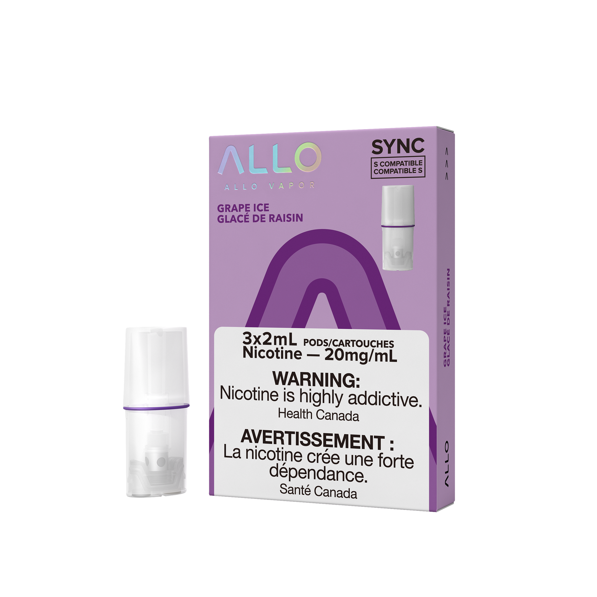 - 3 x Allo Sync Grape Ice 20mg/mL Pods