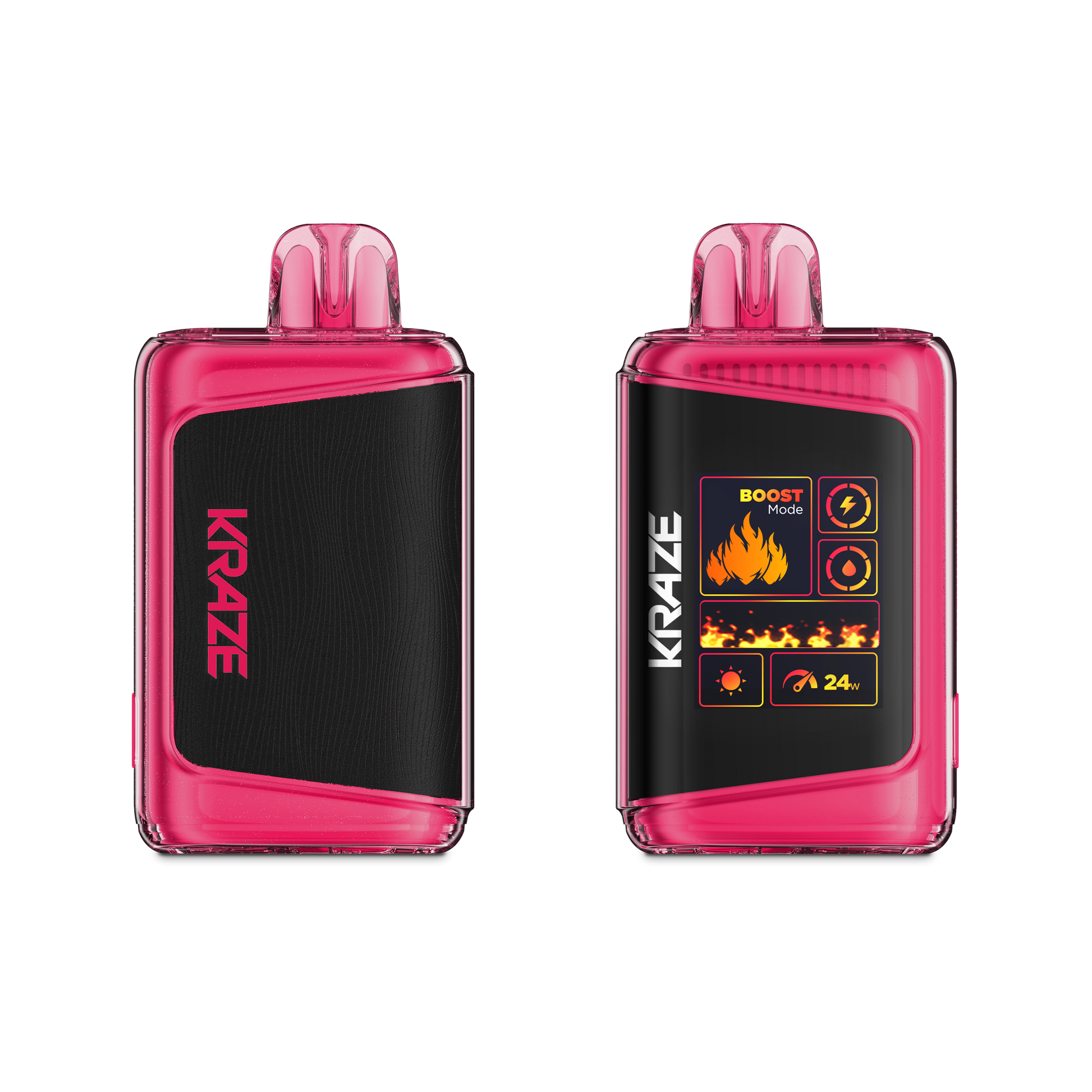 Introducing the Kraze HD Mega, a vaping game-changer. Featuring the largest 1.77-inch OLED screenin Canada. With enhanced dual-coil technology, 20mL e-liquid capacity, and up to 20,000 puffs, it ensures ultimate flavour satisfaction and long-lasting performance. The customizable experience includes Boost 24W/NormaI 12W modes, airflow control. Its user-friendly design includes a light & dark mode toggle, battery, and e-liquid indicators. It's time to go Krazy with the Kraze HD Mega.