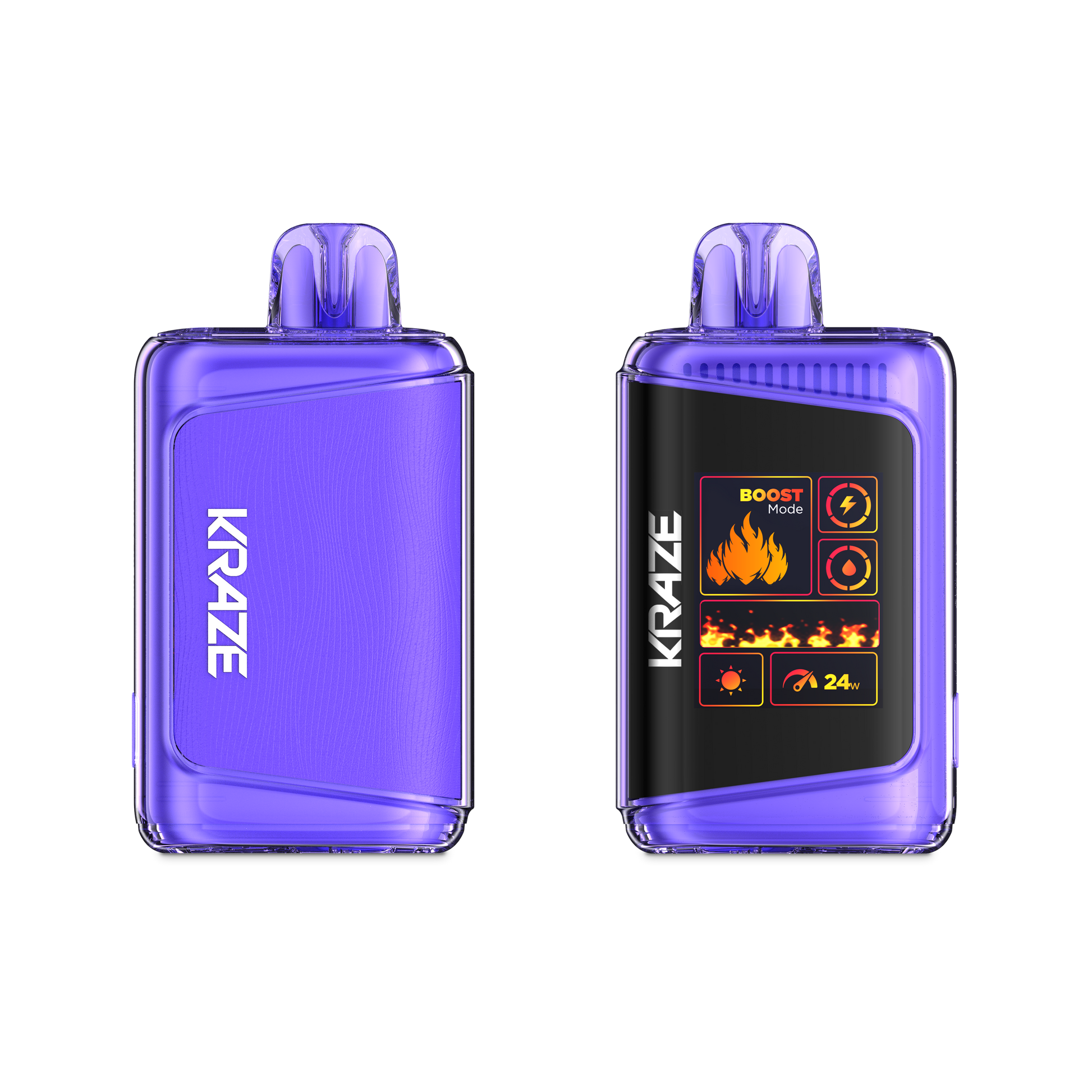 Introducing the Kraze HD Mega, a vaping game-changer. Featuring the largest 1.77-inch OLED screenin Canada. With enhanced dual-coil technology, 20mL e-liquid capacity, and up to 20,000 puffs, it ensures ultimate flavour satisfaction and long-lasting performance. The customizable experience includes Boost 24W/NormaI 12W modes, airflow control. Its user-friendly design includes a light & dark mode toggle, battery, and e-liquid indicators. It's time to go Krazy with the Kraze HD Mega.