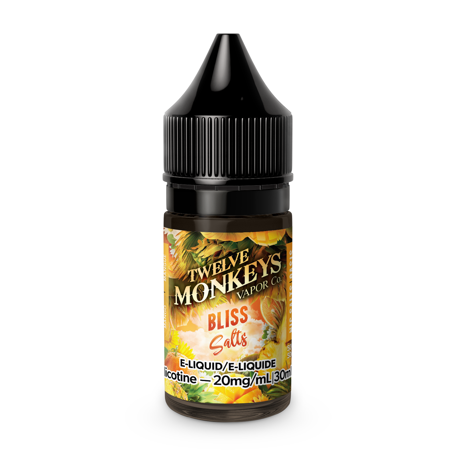 Bliss SALT Twelve Monkeys E-Liquid is a delicious fruit concoction made of mouth-watering tropical fruits such as: juicy oranges, ripe yellow mangoes, and exotic pineapples.